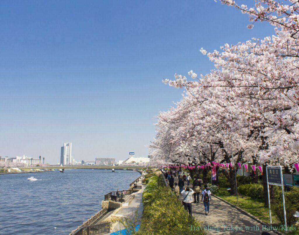 Very famous cherry blossom spots for young adult in Nakameguro, but too many people on the narrow street every year – hard to walk, hard to find a place to take a rest or change diaper. I don’t recommend for family with stroller.