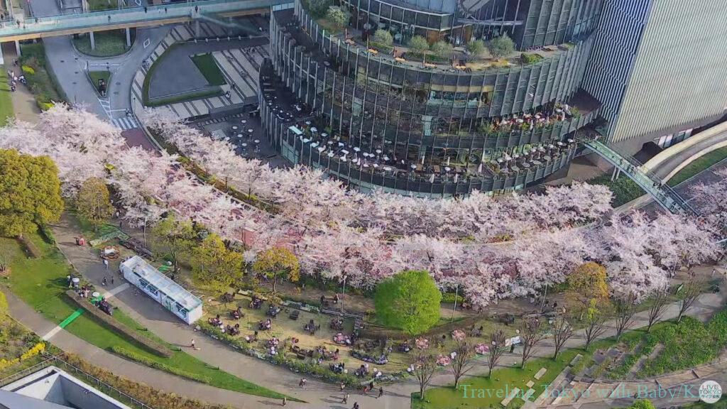There is comfortable park on the north side with Cherry Blossom trees. about 3min walk from Roppongi subway station. Restaurants / cafe / shops / hotel (Ritz Carlton) / clean restroom / nursing room – are all here – mom&dad can feel relax and enjoy cherry blossom.
