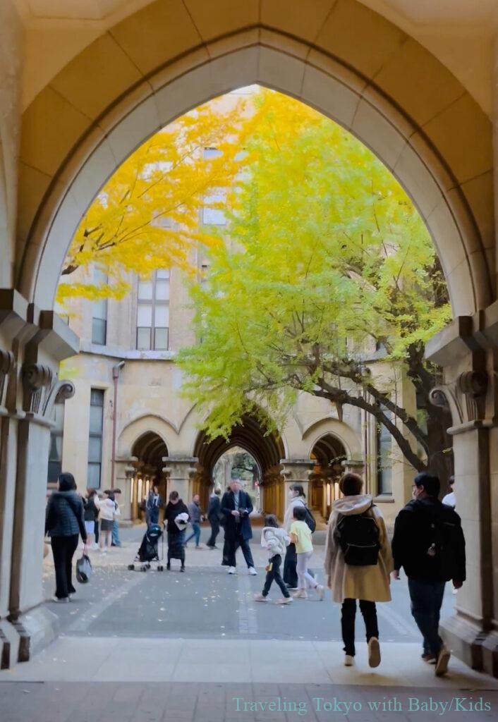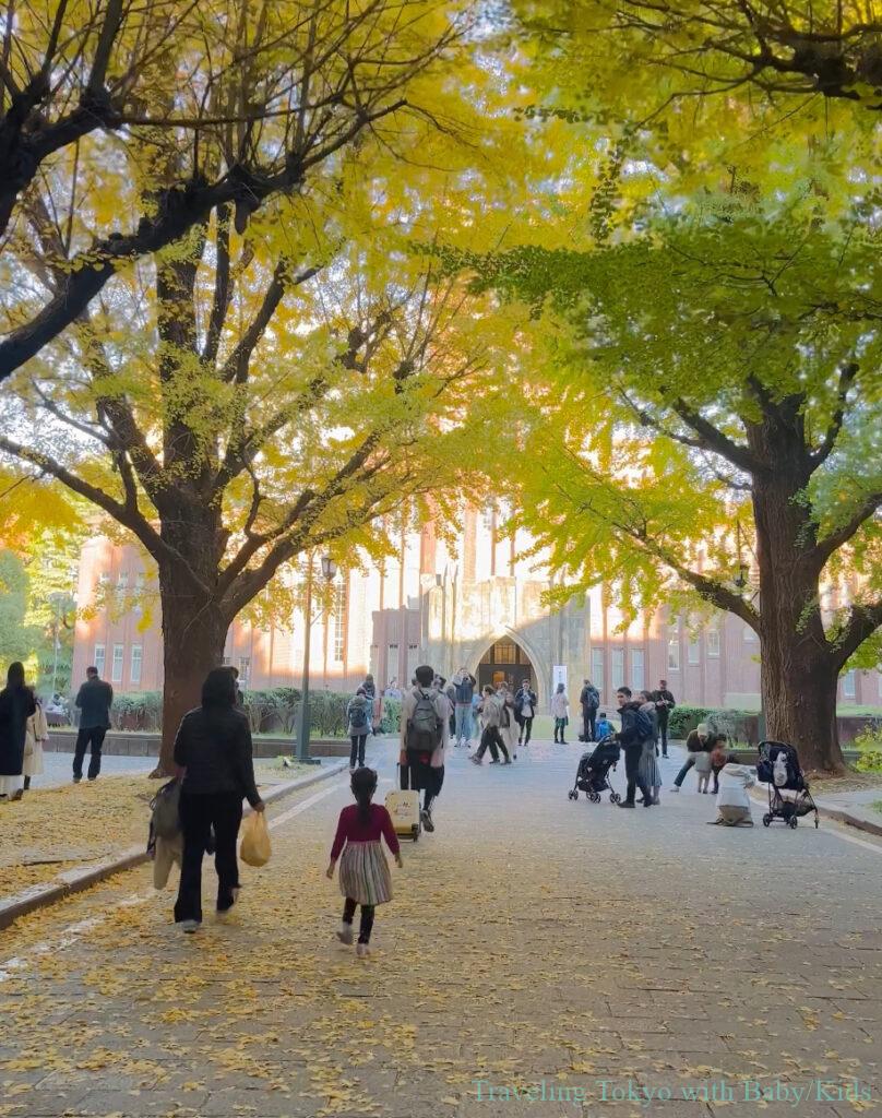 The Hongo Campus of the University of Tokyo boasts stunning ginkgo-lined paths. The spacious campus is ideal for a leisurely walk, and children can enjoy playing with fallen leaves.