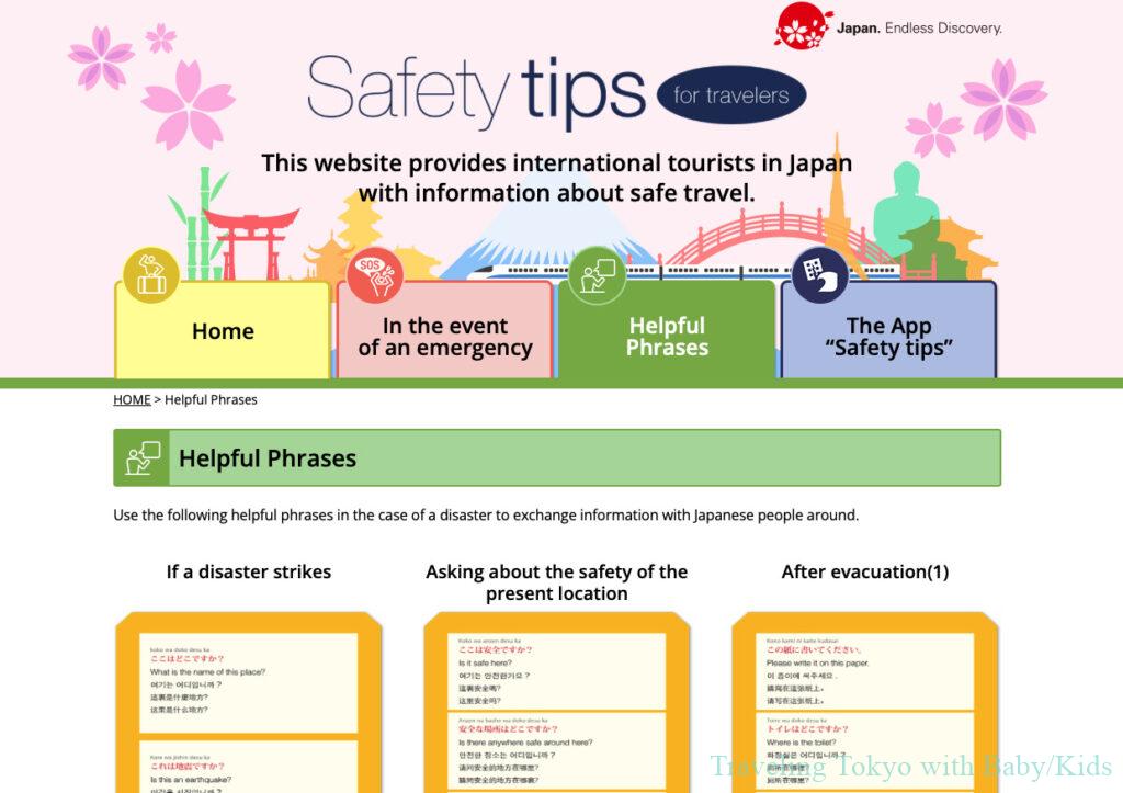 Their “Japan Safe Travel” page includes: