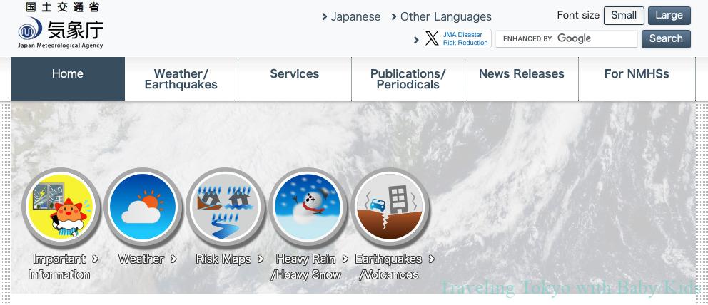 If you want the most technical and authoritative data, especially for tsunami forecasts or typhoon paths, use the JMA English website: https://www.jma.go.jp/jma/indexe.html
