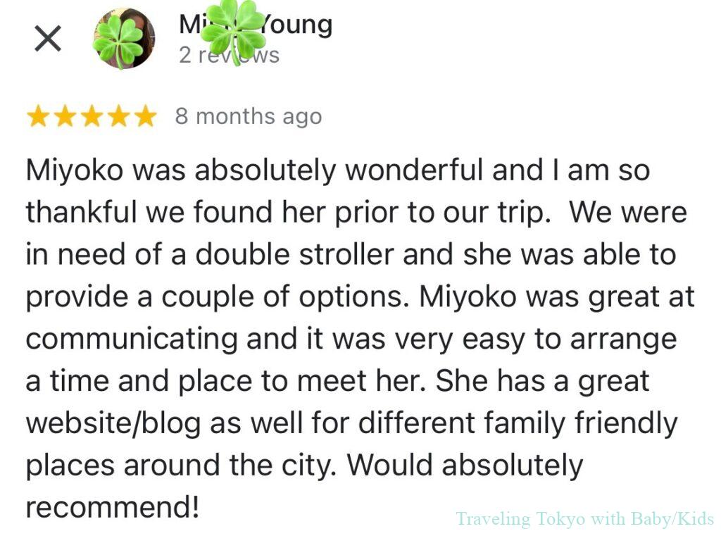 Reviews of Stroller Rental in Ginza (Link to Google Map Review)