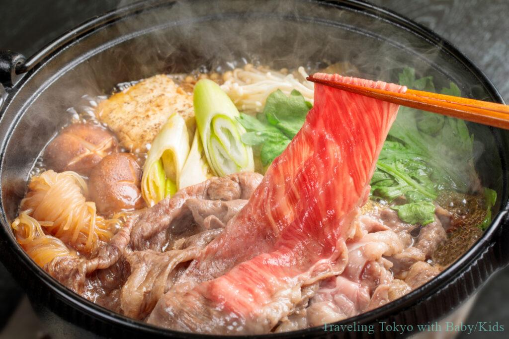 This is a special-occasion dish in Japan. Thin beef slices, tofu, vegetables, and noodles are simmered in a sweet soy-based sauce and often dipped in raw egg before eating (optional for kids). Sukiyaki is rich in flavor and fun to share at the table.