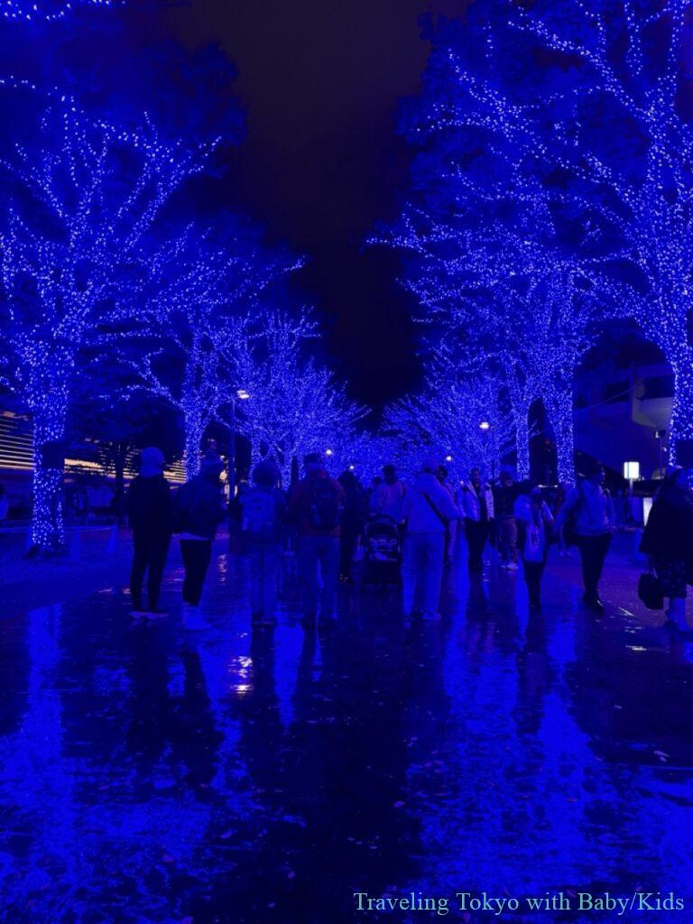 Odaiba has several shopping malls, each with beautiful illuminations to enjoy.